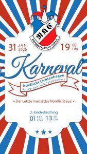 es ist wieder soweit – die fünfte Jahreszeit erreicht ihren Höhepunkt! Unter dem funkelnden Motto „Der Letzte macht das Nordlicht aus“ laden wir euch herzlich zu unserer großen Karnevalsfeier ein.