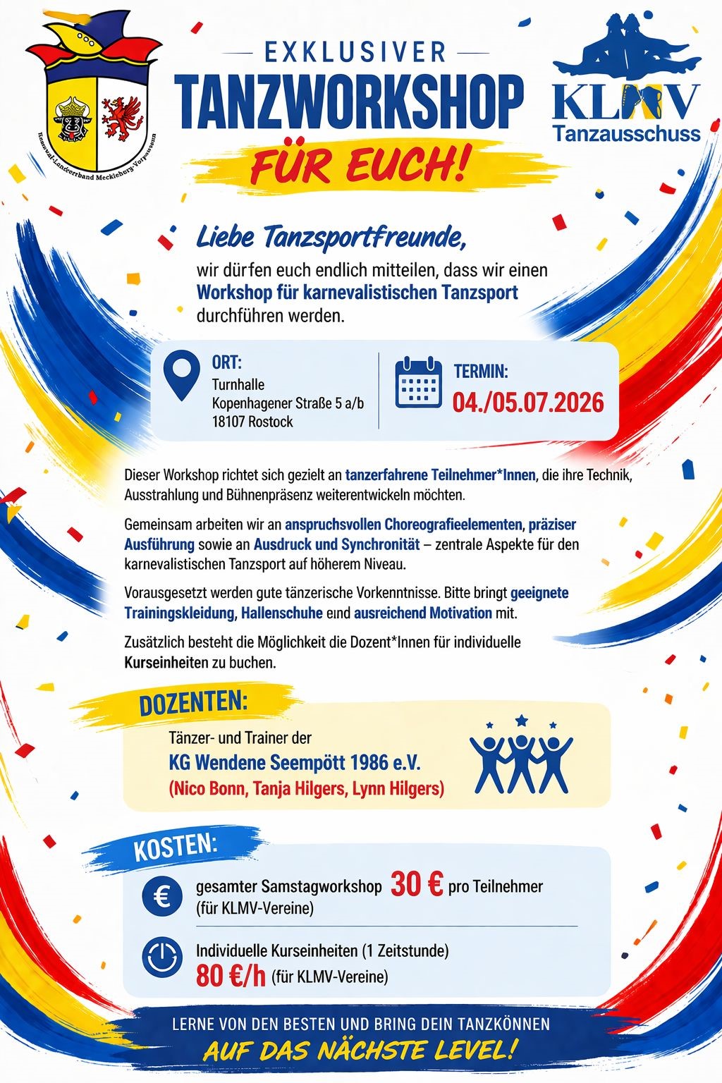 Bei Rückfragen wendet euch bitte an tanz@karneval-mv.de oder direkt an Anja